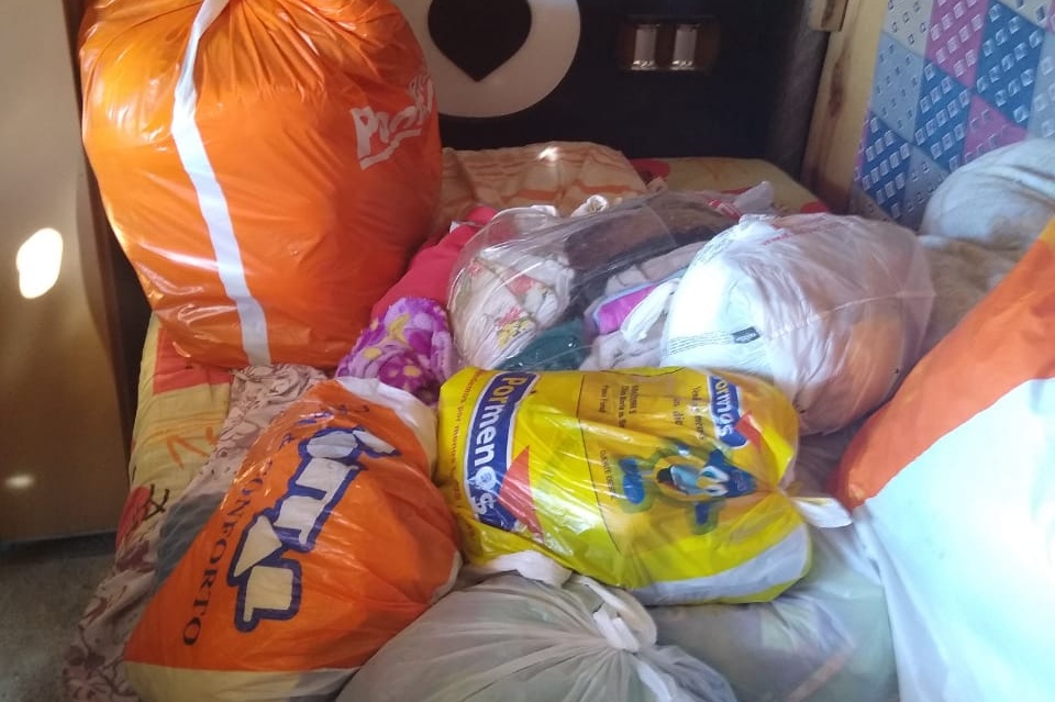 Veja as imagens do carregamento e da quantidade de doações já arrecadas pelos colegas Régis e Vanderlei: