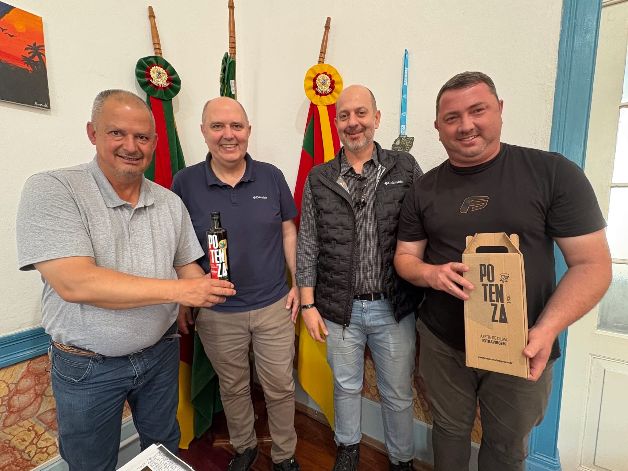 Prefeito de Canguçu recebe produtores do azeite Potenza, premiado em concurso internacional