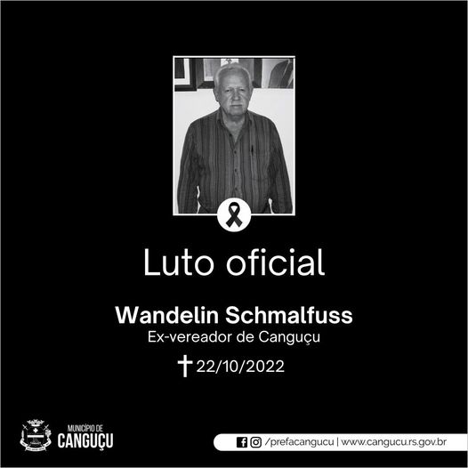 A Prefeitura Municipal de Canguçu decretou luto oficial por 3 dias em razão do falecimento do ex-vereador de Canguçu, Wandelin Schmalfuss, ocorrido no último sábado (22). O político atuou na Câmara de Vereadores durante quatro mandatos.