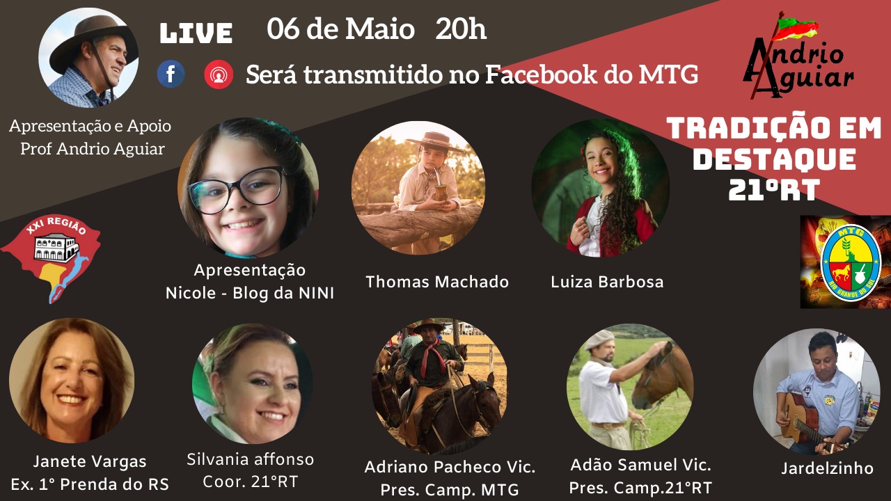 A tradicionalista, blogueira e repórter Mirim Nicole Silva do Blog da Nini, a convite do repórter farroupilha Giovani Grizotti, realizará uma Live beneficente nesta quarta-feira (6) ás 20h na página do Facebook do Movimento Tradicionalista Gaúcho (MTG).
