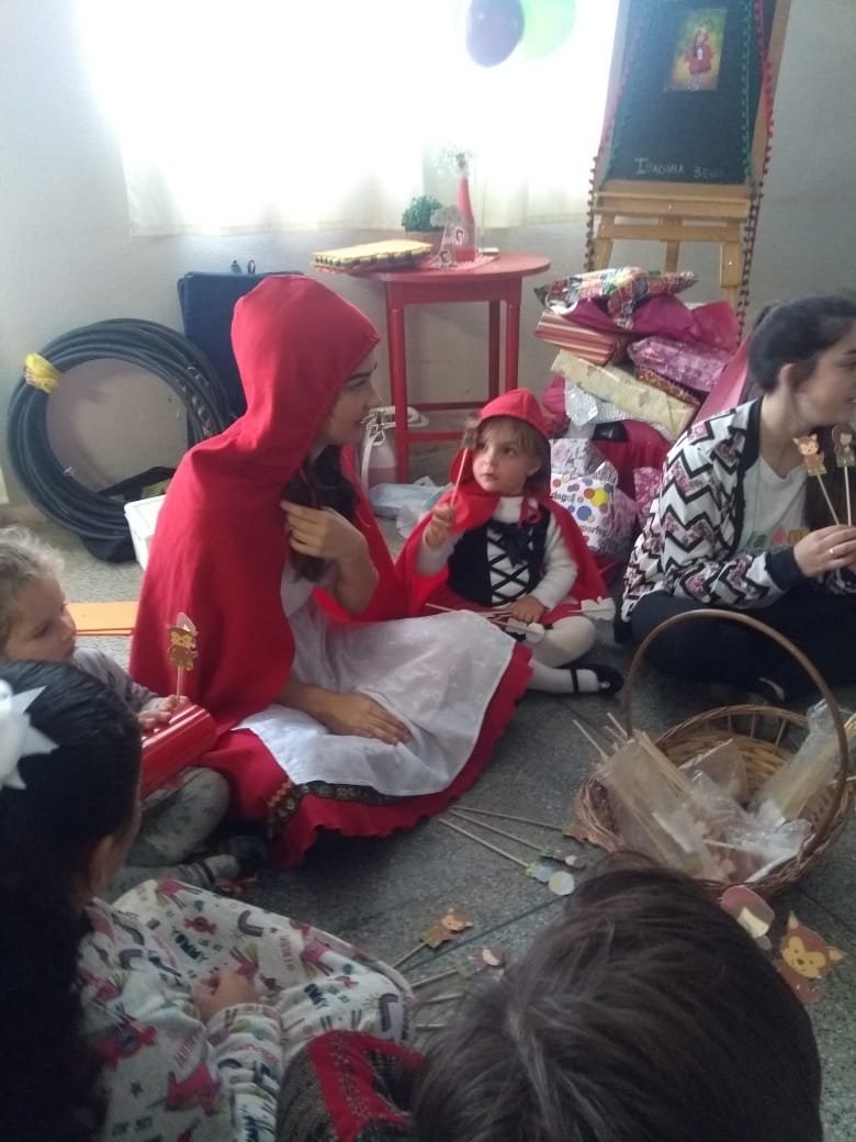 A festa aconteceu na sede do SIMCA e contou com a Personagem Chapeuzinho vermelho, histórias e brincadeiras da Turma da Tia Ani.