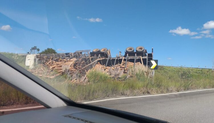 Um caminhão carregado com lenha tombou no viaduto de acesso da BR-471 à BR-392 na tarde desta quinta-feira (5). Não houve feridos.