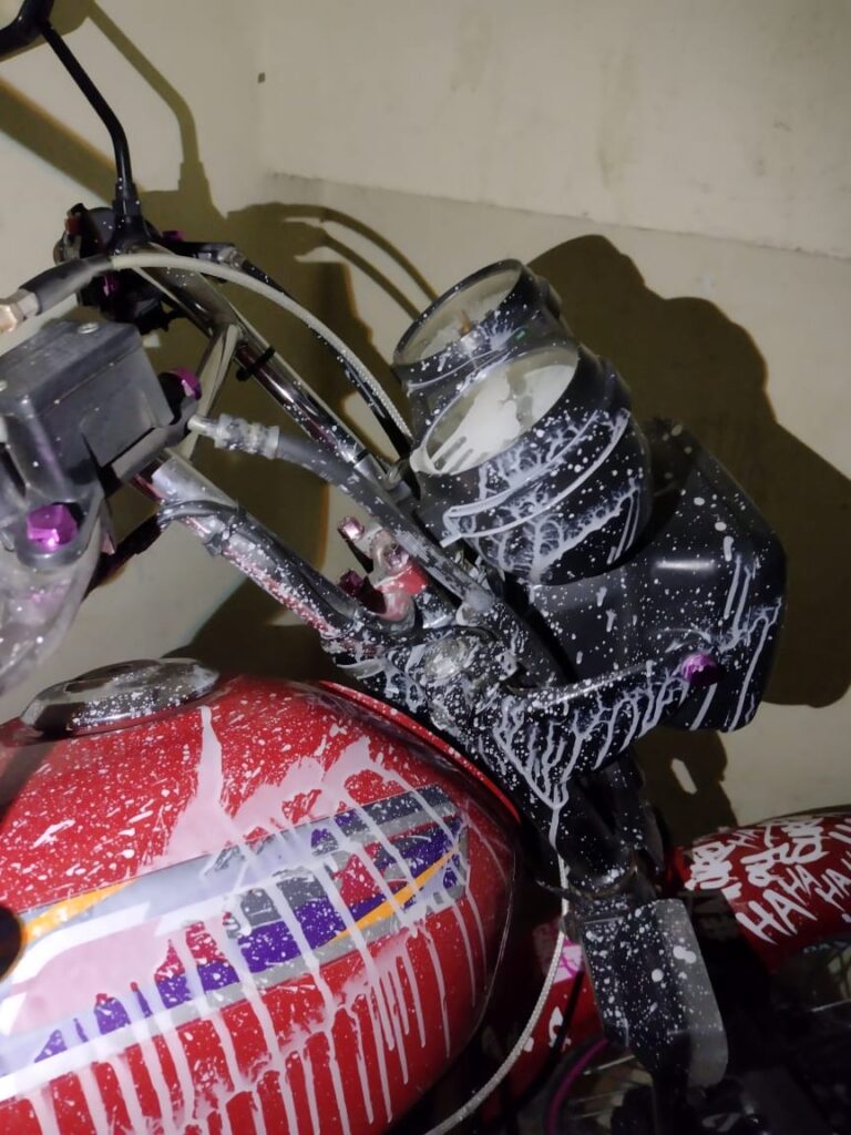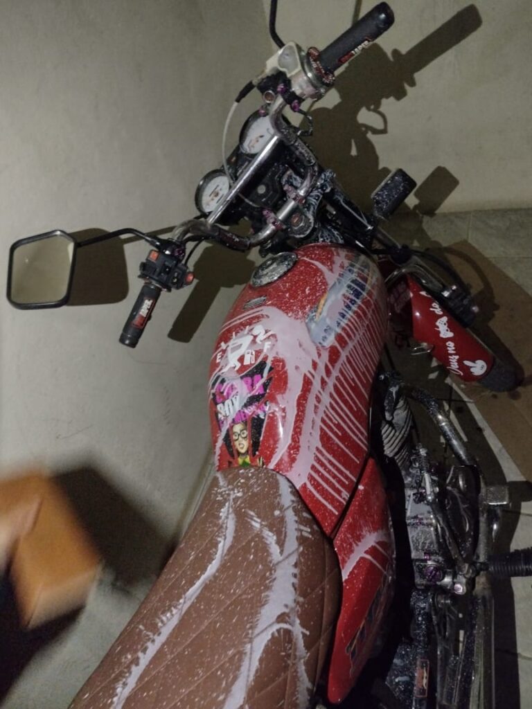 Aí, me aparece um aranhão no tanque de uns 30 centímetros. Deixei quieto, passou uns dois a três dias me jogam uma lata de tinta encima da moto!”