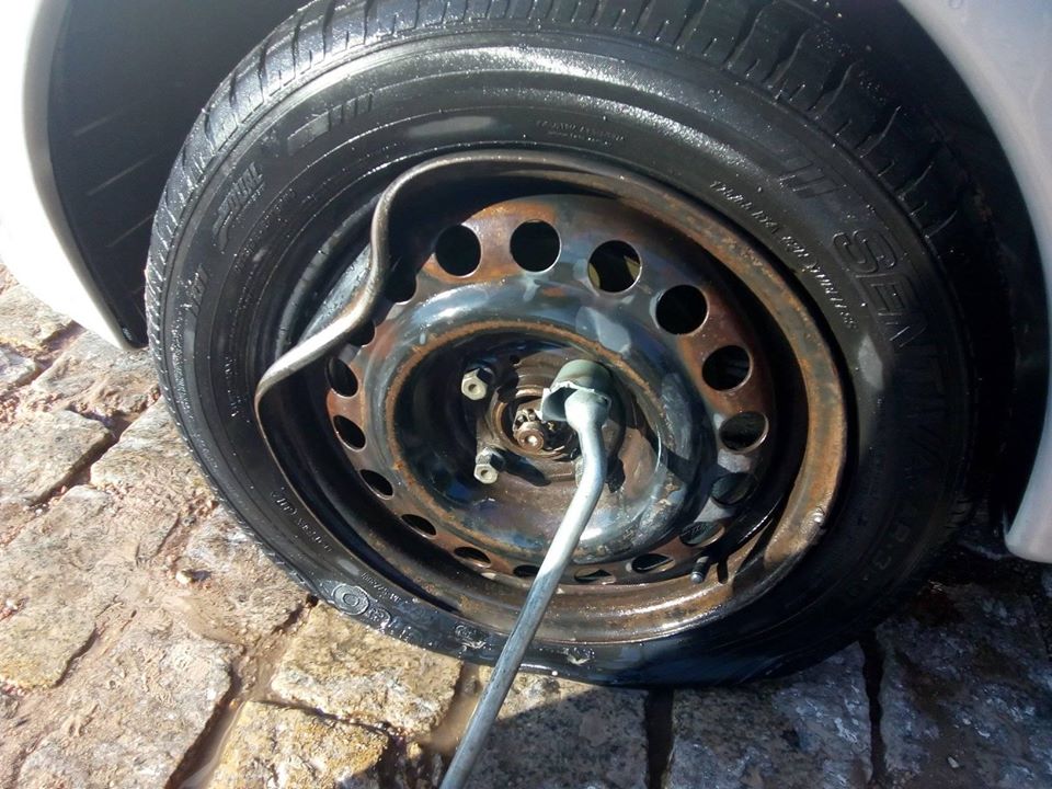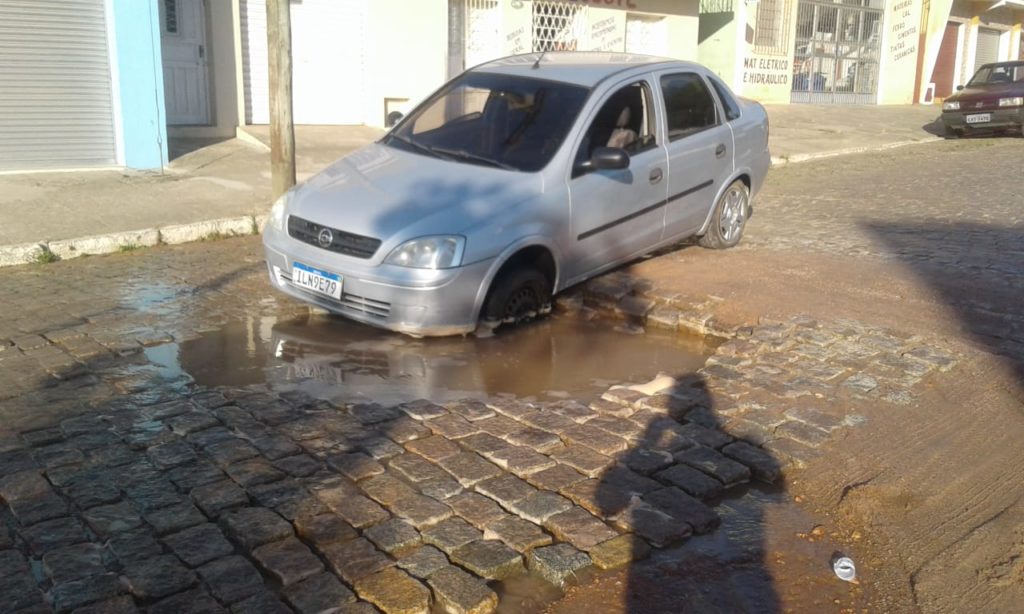 Um carro caiu em um buraco na Avenida 20 de Setembro na manhã deste sábado (28). O registro de fotos foi feito por Marco Antonio Xavier.