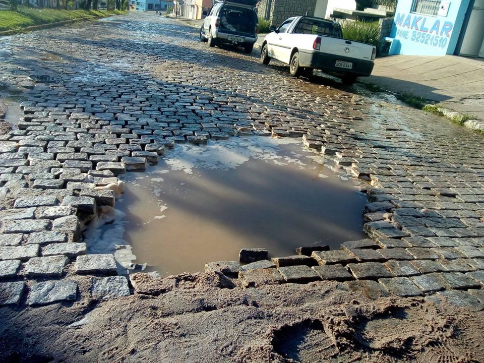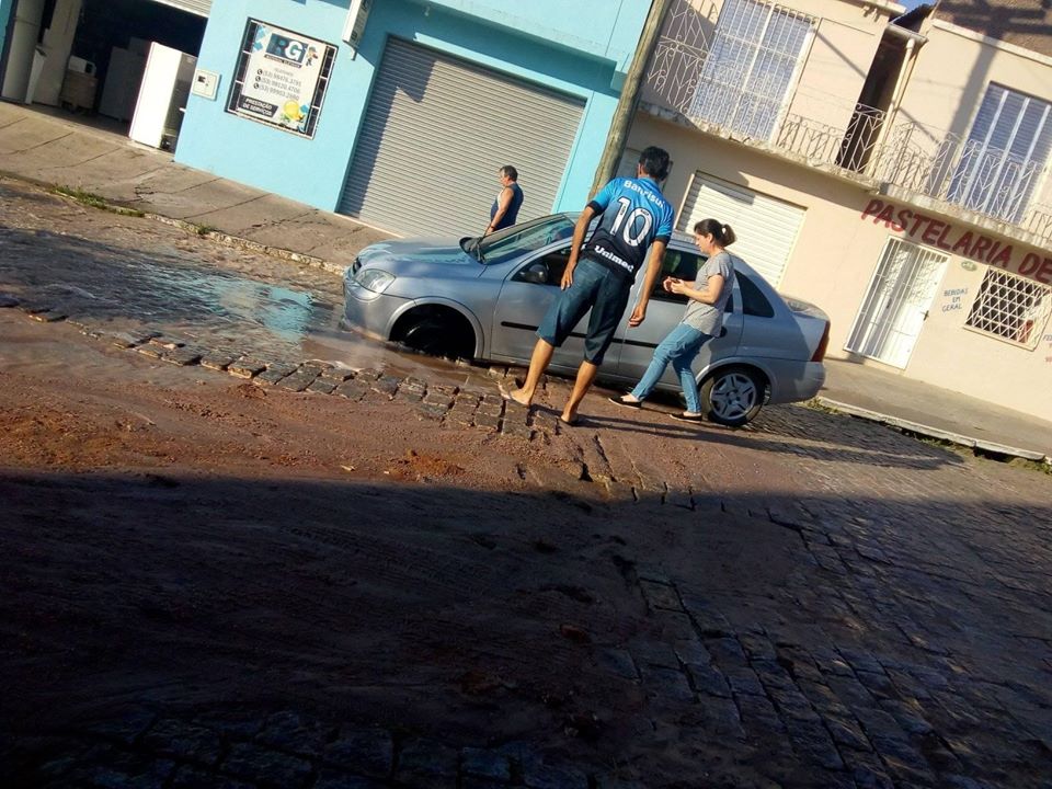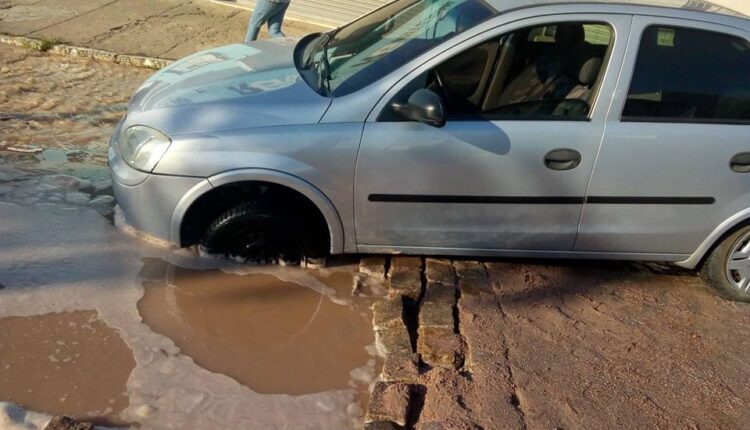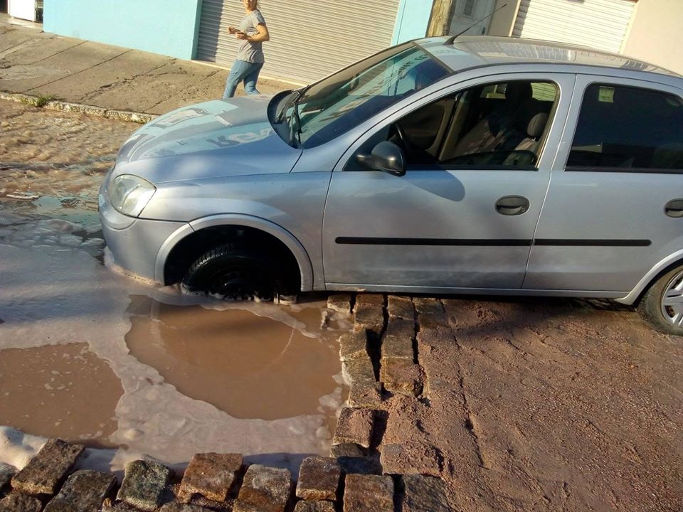 Um carro caiu em um buraco na Avenida 20 de Setembro na manhã deste sábado (28). O registro de fotos foi feito por Marco Antonio Xavier.