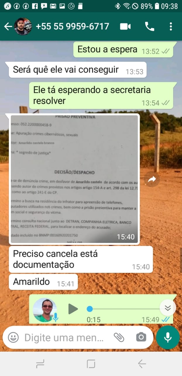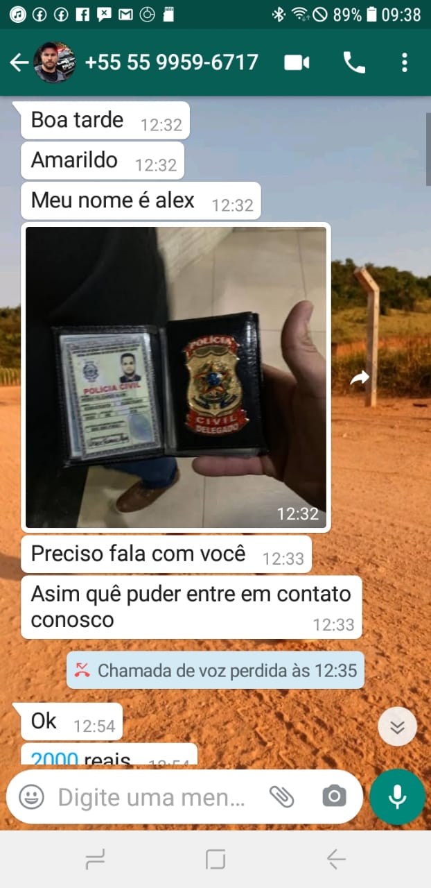 Pouco tempo depois uma outra pessoa se passando pelo Delegado de Canguçu, com o nome de “Alex”, entrou em contato com o número de Amarildo e disse que era o titular responsável pela Delegacia de Polícia de Canguçu e que estaria “disposto a resolver” a denúncia de pedofilia contra o homem que havia sido registrada na “Delegacia da cidade”. O suposto delegado disse que caso fosse depositado a quantia de R$ 2 mil, conseguiria cancelar a denúncia feita pela menina, que seria menor de idade, contra o homem.