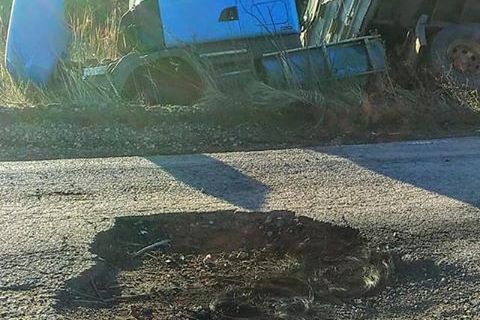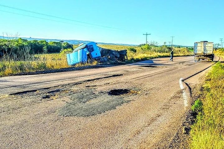Leitor registra saída de pista de carreta na ERS-471 devido aos buracos no asfalto