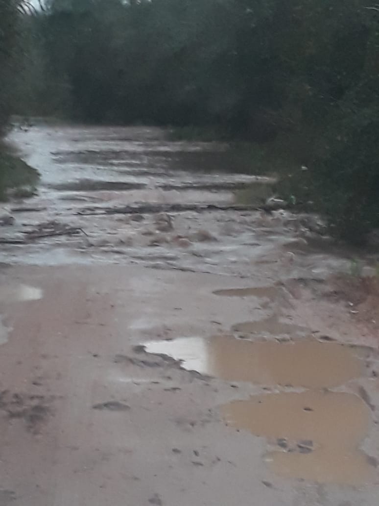 No Passo do Atalho, 1º Distrito, uma professora que trabalha na localidade não conseguiu atravessar uma ponte na localidade. O local já está todo submerso devido às águas da chuva.