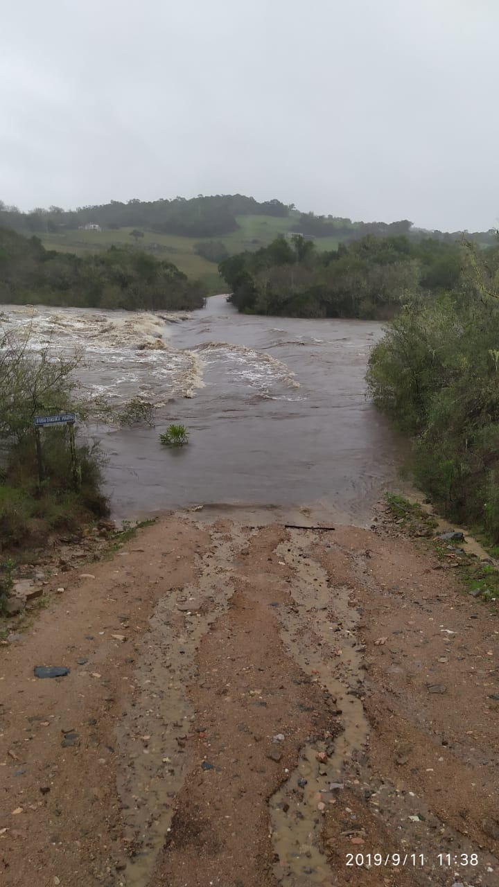 O Leitor Mateus Schmidt Weege enviou uma imagem da Ponte dos Mussi localizada na Glória, 1º Distrito. De acordo com Mateus, o local está sem condições de trafego devido ao grande volume de águas.