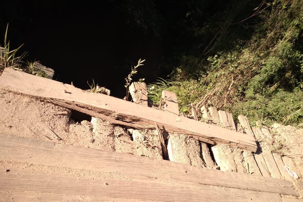 Os moradores já estão cansados de pedir uma ponte nova, pois a mesma está em situação presaria e colocando em perigo quem passa por ali.Quando o pessoal da manutenção vem, eles só trocam as tábuas de cima e deixam a estrutura do mesmo jeito. – relatou Tanise Duarte.