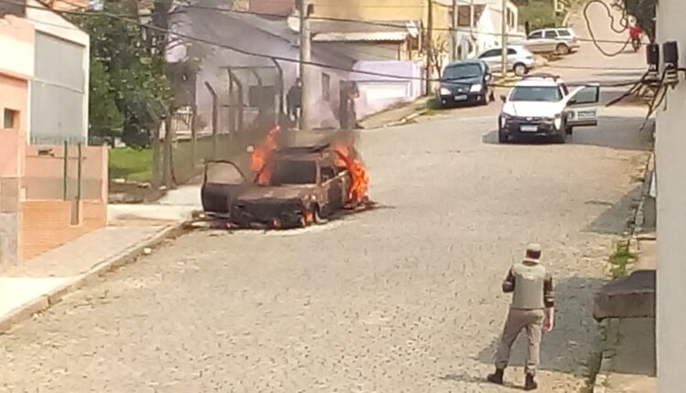Um carro que estava na Rua Cel. Leão Silveira Terres, no bairro Vila do Céu, em Canguçu, foi praticamente todo consumido pelas chamas no começo da tarde desta sexta-feira (11). O registro foi feito pela leitora Cleonice Zanetti.