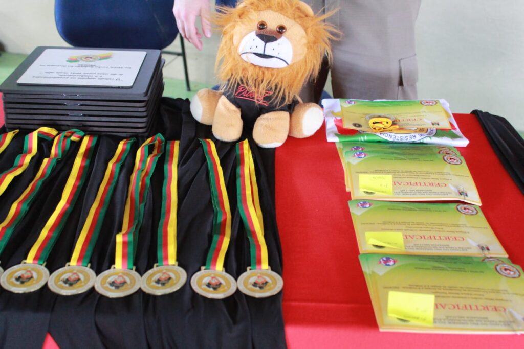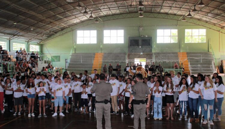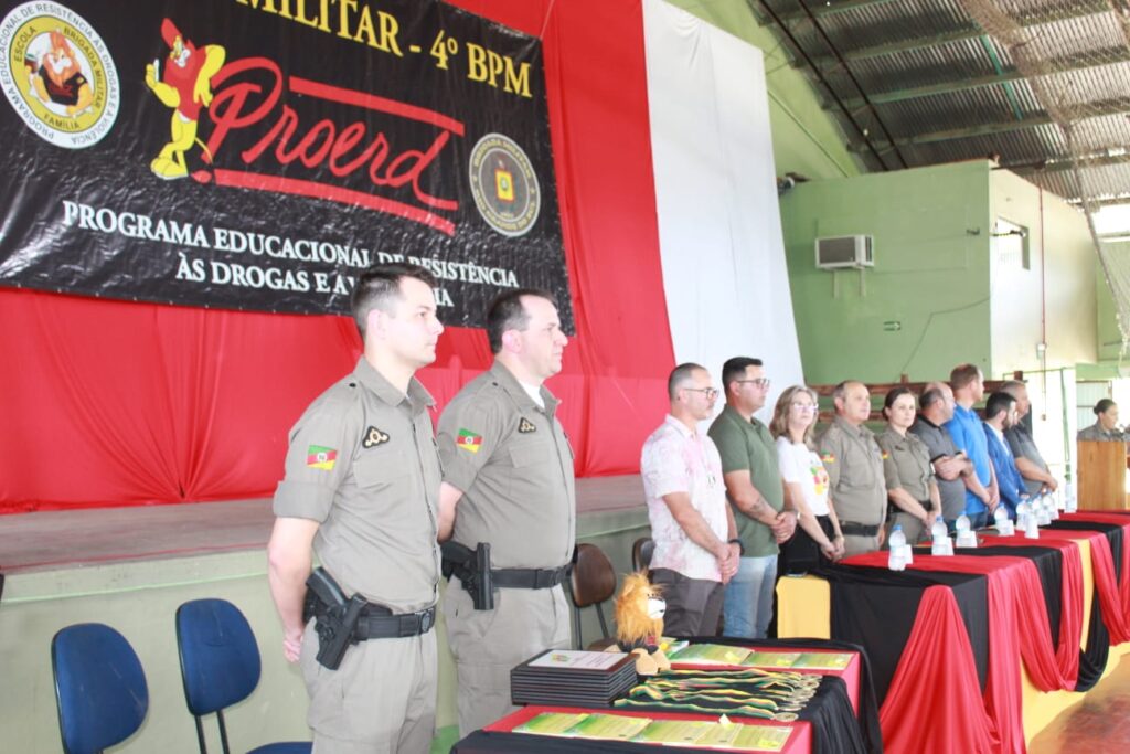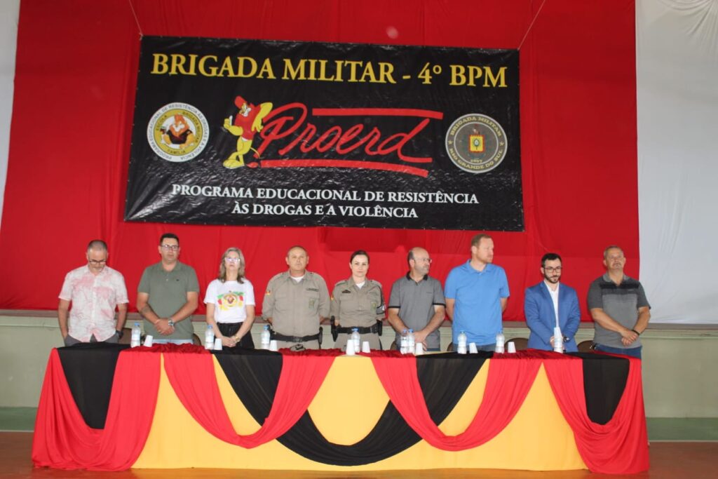 Na oportunidade, a Capitã Madalena Denzer Krüger, Coordenadora Regional do PROERD, e autoridades do Judiciário, Executivo, Legislativo, prestigiaram o evento.