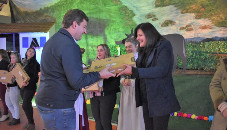 Durante o 17° Festival da Cultura Alemã e Pomerana (FESTCAP), na última sexta (1°), a Prefeitura realizou o ato simbólico da entrega dos Chromebooks aos professores efetivos da rede municipal de ensino. Ação aconteceu por meio da Secretaria Municipal de Educação, Esportes e Cultura no Ginásio Municipal de Esportes.