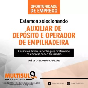A Multisul Distribuidora está contratando. Os currículos devem ser entregues na empresa até o dia 6 de novembro.