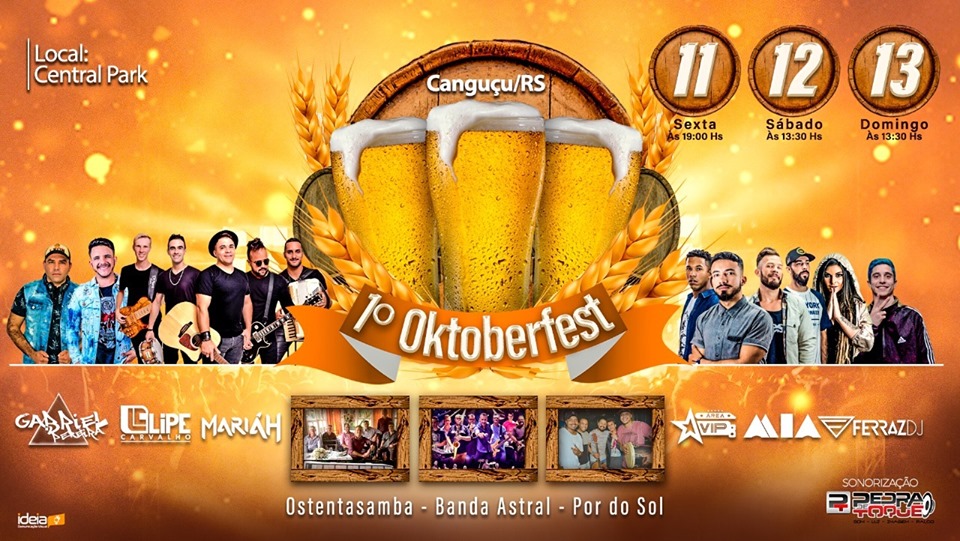 Canguçu terá a sua 1ª Oktoberfest, que acontece a partir desta sexta-feira (11), sábado (12) e domingo (13) no Central Park, localizado na Baixada do Rodeio acesso pela BR-392 quilômetro 133.