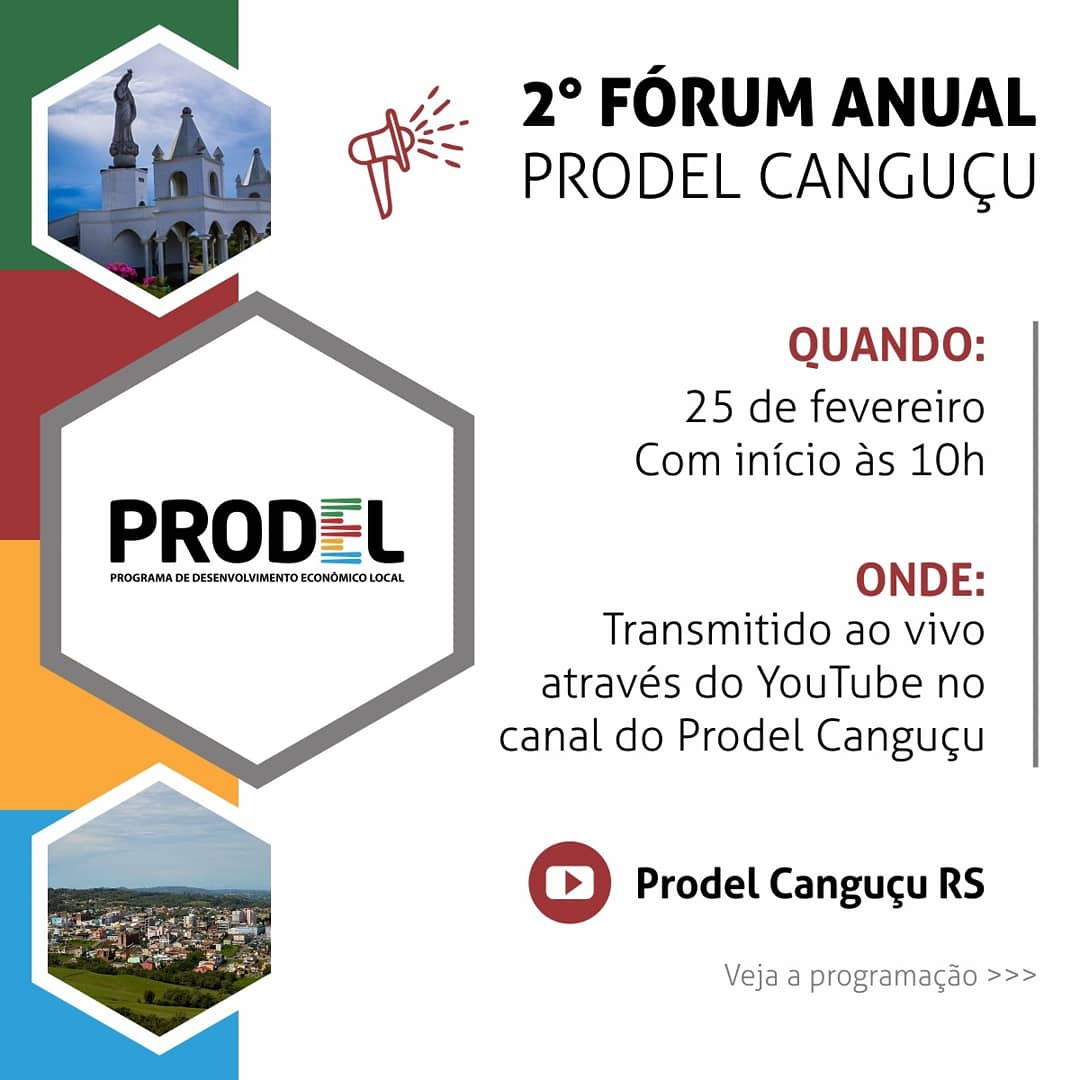 Em comemoração aos dois anos de atuação no município de Canguçu, o Programa de Desenvolvimento Econômico Local (PRODEL), realizará o 2ª Fórum Anual do PRODEL e convida a comunidade para participar desse momento de forma online, no dia 25 de fevereiro, a partir das 10h.