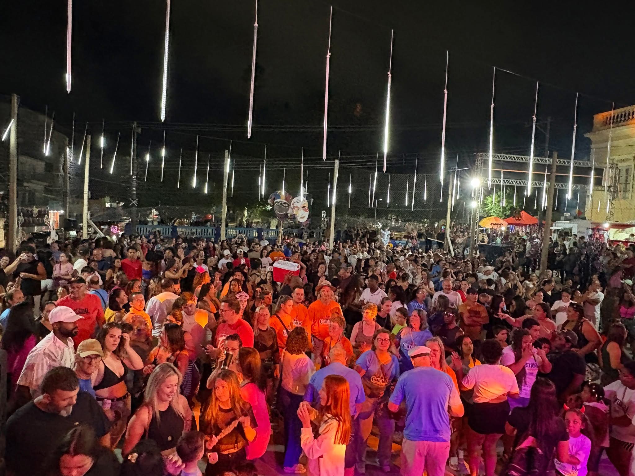 A animação começou ainda no trajeto até a praça, quando a Charanga Canguçu conduziu os foliões desde a sinaleira, mantendo o clima festivo durante todo o percurso. Já no palco, a Banda Sapatinho e a Xavabanda garantiram a trilha sonora da noite, alternando entre sucessos atuais e clássicos do carnaval brasileiro.