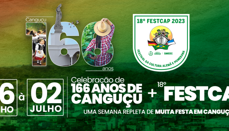 No próximo dia 27 de junho, a cidade de Canguçu completará seus 166 anos. Para comemorar, será realizada uma semana inteira de atrações, de todos os tipos, no município. A festa começará já no dia 26 com o 18º Festival da Cultura Alemã e Pomerana, que se estenderá até o dia 2 de julho no Ginásio Municipal.