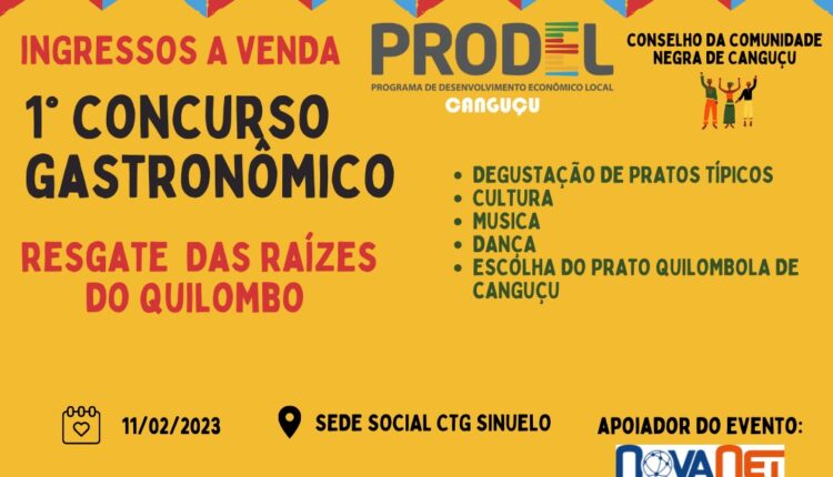 No evento ocorrerá degustação de pratos típicos, a escolha do prato quilombola, musica, dança e cultura. Com o apoio da NovaNet, a festividade será na Sede Social do CTG Sinuelo, no dia 11 de fevereiro, às 16h. Os ingressos custam R$ 15 na Secretaria de Assistência Social.