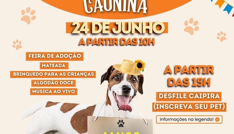 O evento será dia 24 de junho na Praça Central, das 10h às 17h e contará com pipoca, algodão doce, amendoim, maçã do amor, quentão e muitas outras comidas típicas, além de brinquedos infláveis para a diversão das crianças, mateada, música ao vivo e o mais importante: adoráveis filhotes aguardando por um lar.
