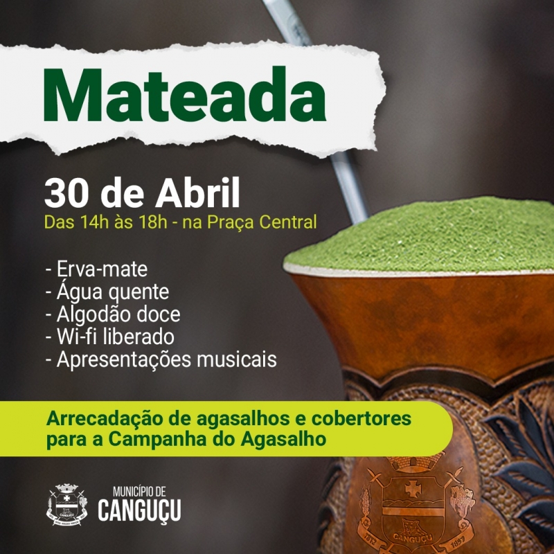 Vamos aquecer um coração enquanto nos aquecemos com um chimarrão? Neste sábado (30), a Prefeitura através da Secretaria de Assistência Social e Direitos Humanos promoverá uma Mateada Solidária na Praça Central. O evento será realizado das 14h às 18h.