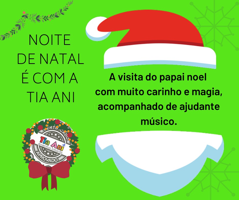 Que tal tornar a noite de Natal de sua família inesquecível e mágica? Fale com a tia Ani Eventos Infantis e programe para a sua noite ou dia a visita do Papai Noel.