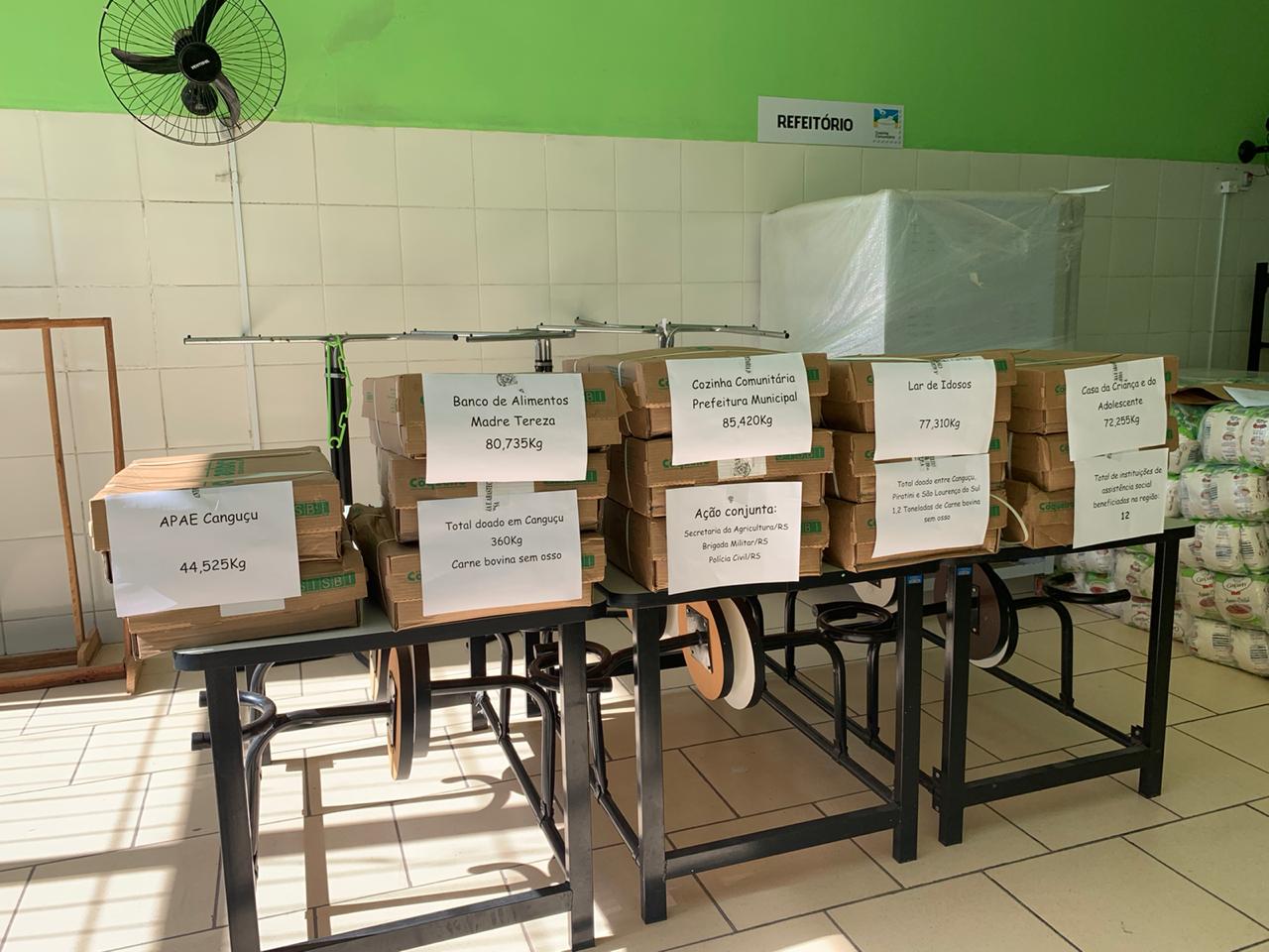 No município de Canguçu foram atendidas as seguintes entidades: APAE, Casa da Criança e do Adolescente, Lar de idosos, Banco de alimentos Madre Tereza e Cozinha comunitária Municipal.