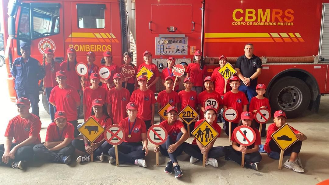 No sábado, dia 23, os alunos do projeto Bombeiro Mirim participaram de uma aula sobre educação no trânsito, conduzida