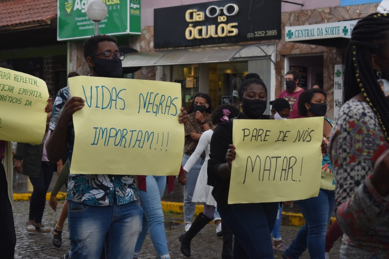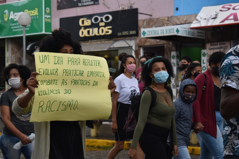 Logo após este momento, os participantes iniciaram uma caminhada em protesto e repúdio ao racismo, partindo da Praça Doutor Francisco Carlos dos Santos percorrendo a Rua General Osório.