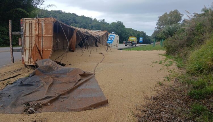 Carreta tomba na BR-392 próximo a Morro Redondo