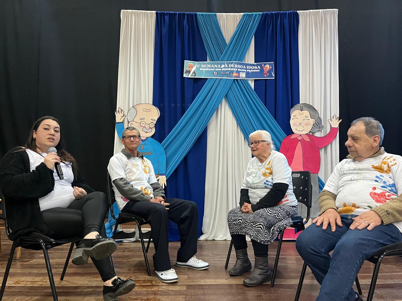 Devido à instabilidade do tempo, a atividade, que inicialmente aconteceria na Praça Dr. Francisco Carlos dos Santos, foi transferida para o teatro, garantindo maior conforto e acolhimento aos participantes. O público pôde desfrutar de roda de chimarrão, apresentações culturais e atividades de convivência, reforçando o papel da pessoa idosa como protagonista na comunidade.