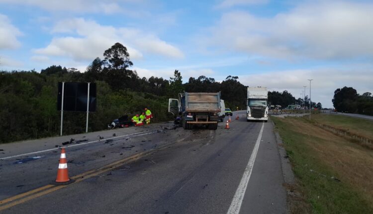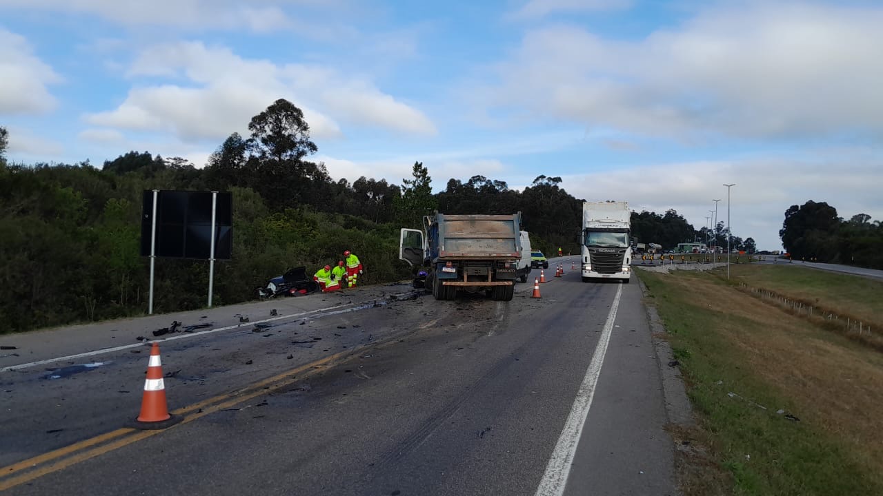 Colisão frontal entre carro e caminhão deixa dois mortos na BR-116 em Pelotas