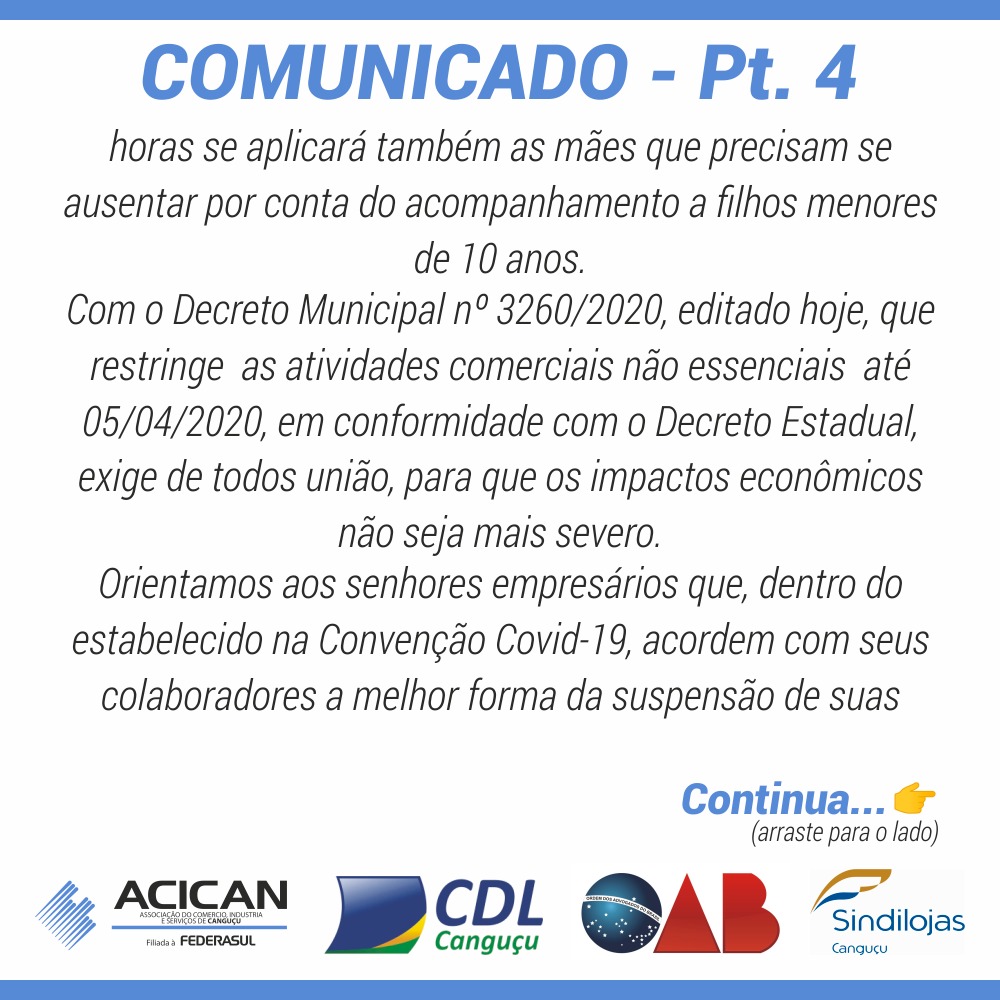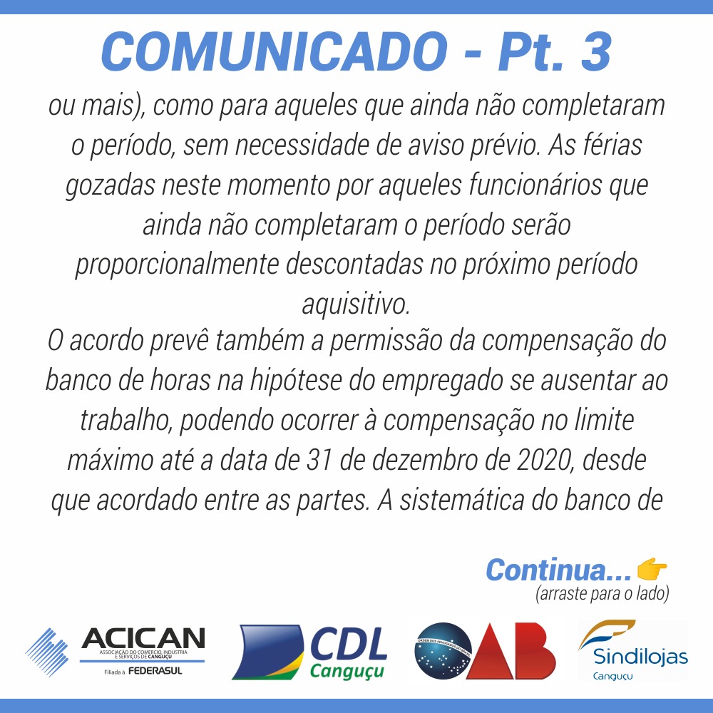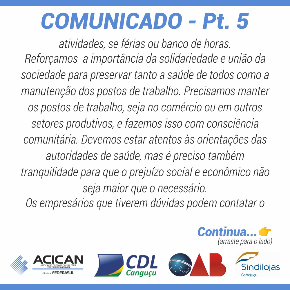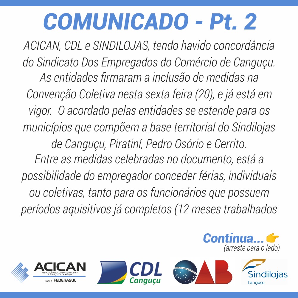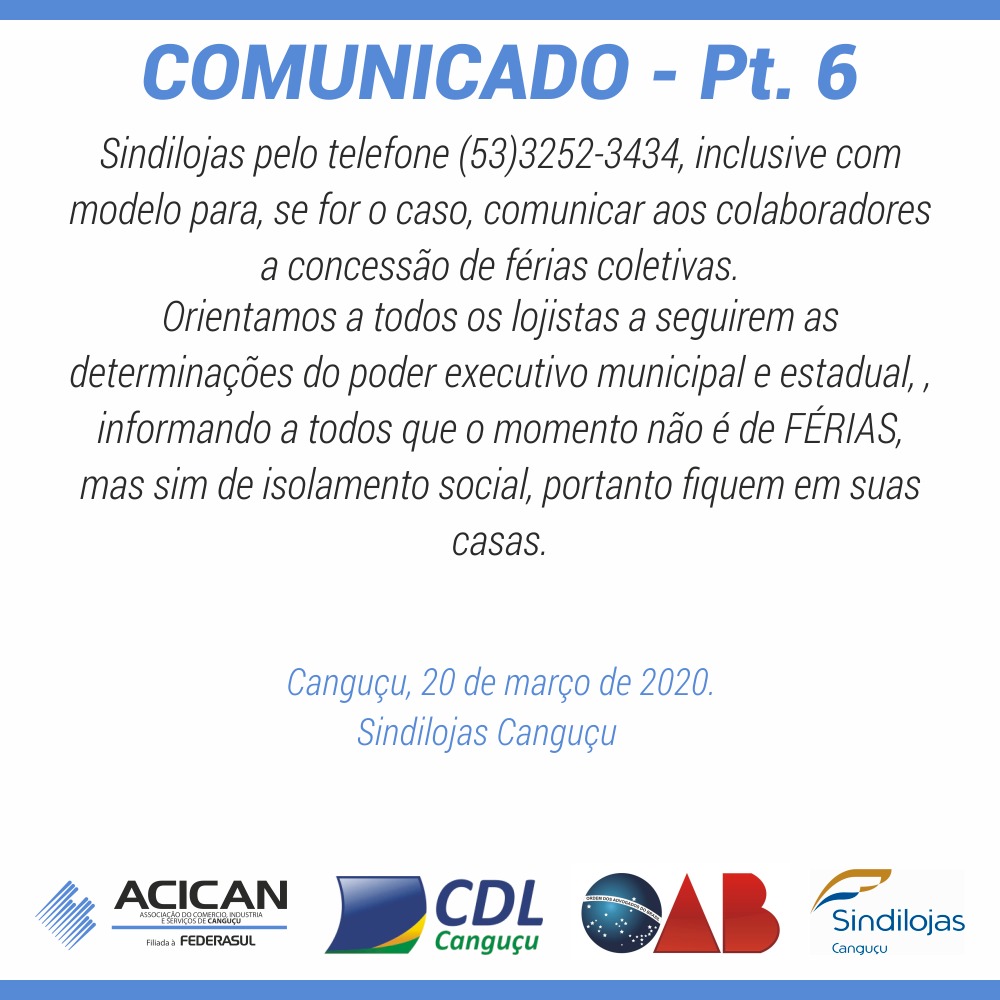Comunicado do Sindilojas, SINDEC, OAB, ACICAN e CDL