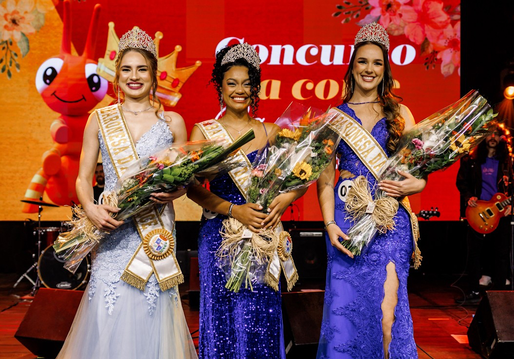 Após uma jornada de semanas se preparando, três candidatas finalizaram o Concurso da Corte de Baronesas da Fenadoce 2026 com motivos para comemorar. As novas representantes, escolhidas no desfile final que aconteceu na noite desta terça-feira (29) durante a programação da 31ª Fenadoce, são Andressa Gonçalves Tejada (19), representante da Imperatriz Doces Finos, Érika Frank Maciel (28), representante das Óticas Bilharva, e Sarah Chagas Matos dos Santos (20), representante da empresa Cidade Alta Bairro Planejado.