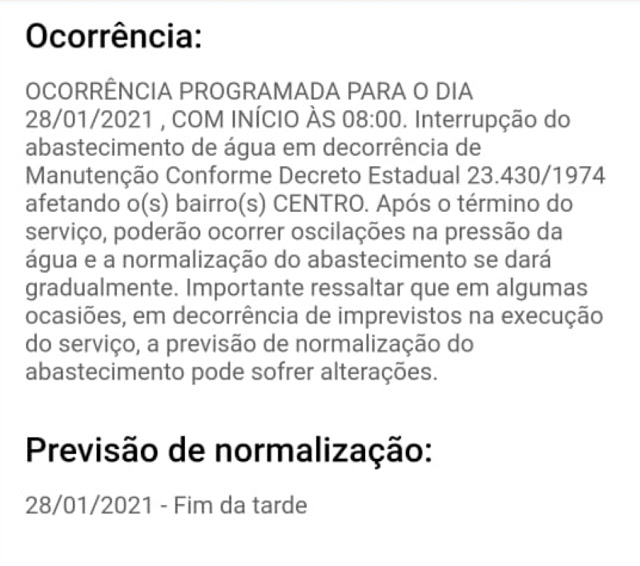 A companhia da Corsan de Canguçu informa que haverá uma interrupção de abastecimento de água na próxima quinta-feira (28), à partir das 8h, em decorrência de manutenção conforme Decreto Estadual nº 23.430/1974, afetando o bairro Centro.