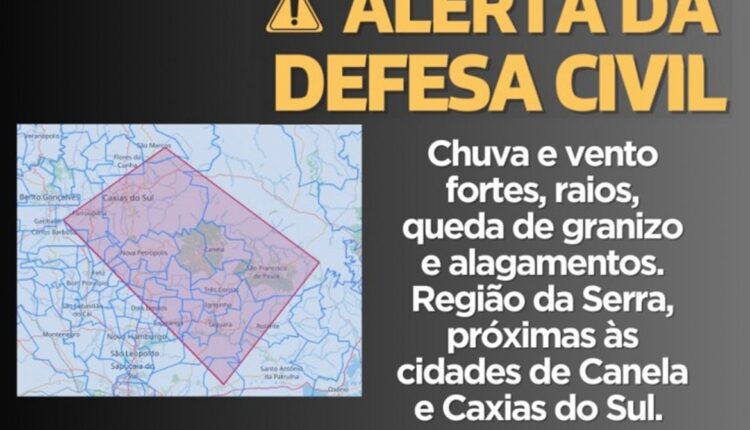 A Defesa Civil do Rio Grande do Sul emitiu, nesta sexta-feira (17), cinco alertas para moradores e pessoas que estejam de passagem por diferentes regiões do estado. Os avisos abrangem várias cidades onde há previsão de chuvas e ventos fortes acompanhados por descargas elétricas e possibilidade de queda de granizo ainda hoje.