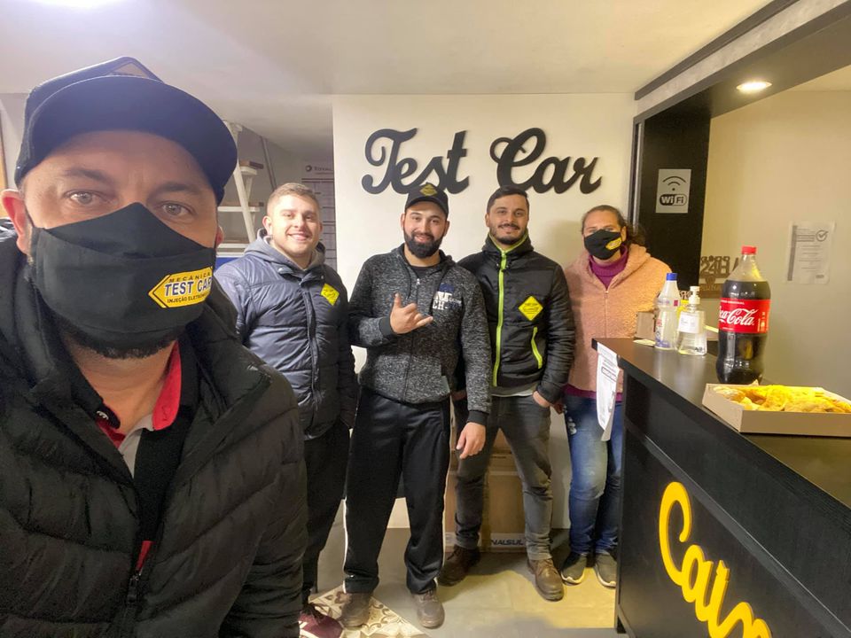Recentemente Gabriel e sua equipe de funcionários da Mecânica Testa Car postaram uma foto no perfil do Facebook no interior do estabelecimento onde trabalhavam em comemoração do aniversário de um dos membros da equipe: