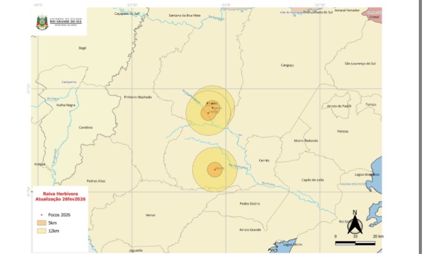 O comunicado considera a possibilidade de avanço do foco para outras localidades da região, incluindo Canguçu, Herval, Pedro Osório, Cerrito e Pinheiro Machado. Também foi destacado o registro de elevado número de agressões a animais nessas áreas, sem a identificação completa de refúgios de morcegos hematófagos, principais transmissores da enfermidade.