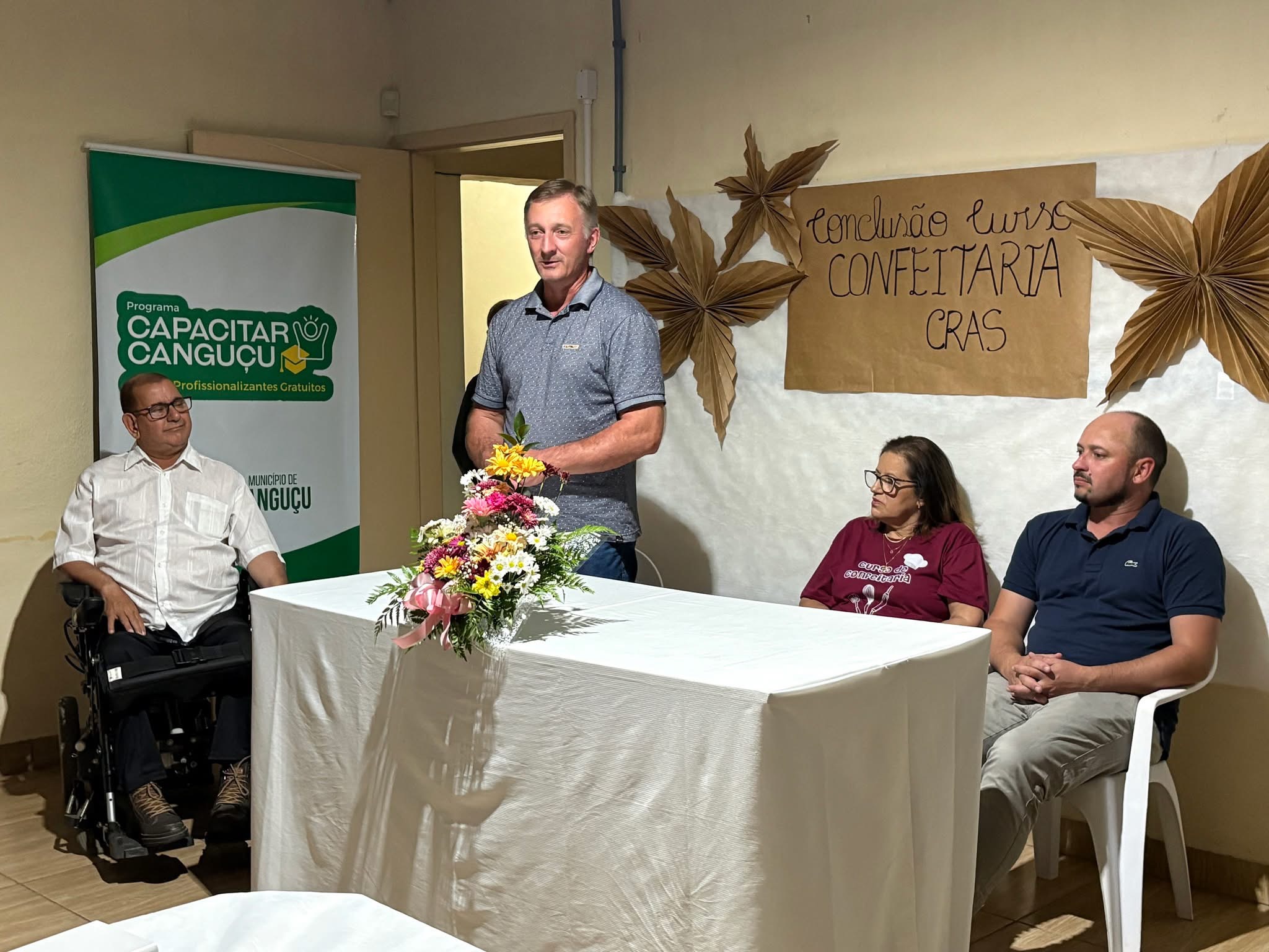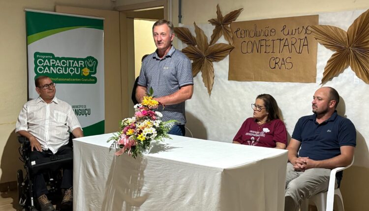 Na última sexta-feira (21), o prefeito de Canguçu em exercício, Ariel Timm, participou da cerimônia de formatura do Curso de Confeiteira, promovido pela Associação Educacional e Cultural Canguçuense (AECC) em parceria com o CRAS Vila Nova. As aulas foram ministradas pela professora Carla Pereira e marcaram mais uma iniciativa de qualificação profissional voltada à comunidade local.