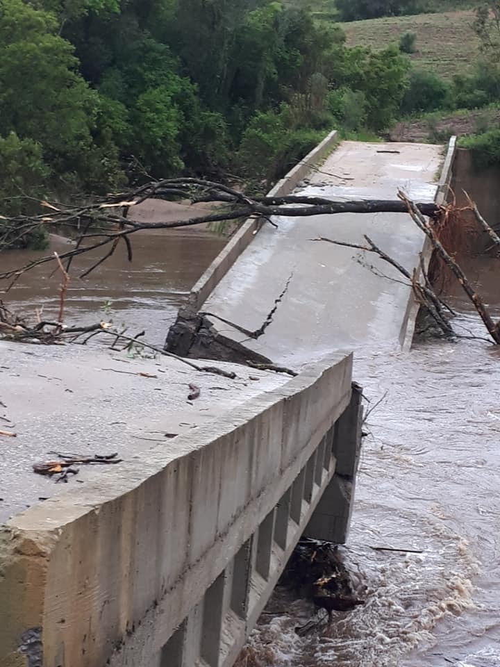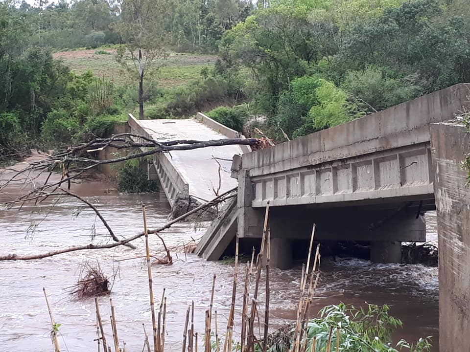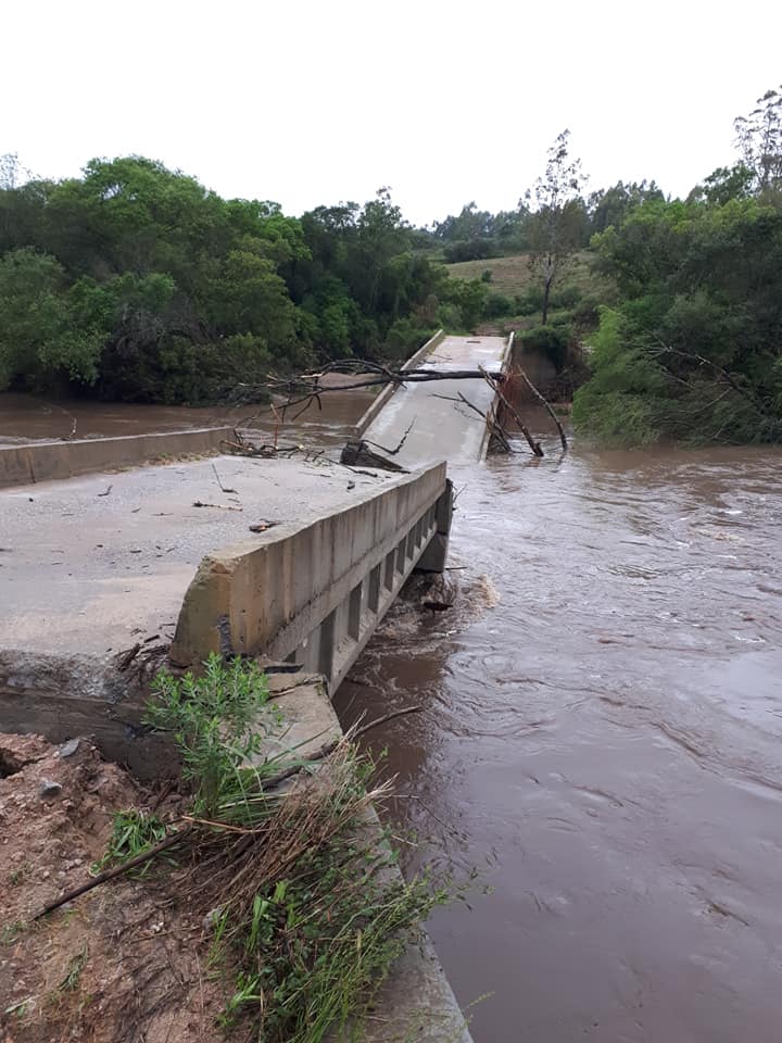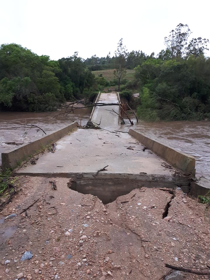 Outras 10 pontes também caíram no interior de Canguçu após a chuva que atingiu a região nos últimos dias. De acordo com o Instituto Nacional de Meteorologia (Inmet), foram registrados 300mm no mês no mês de outubro na cidade. O volume é o triplo do previsto.