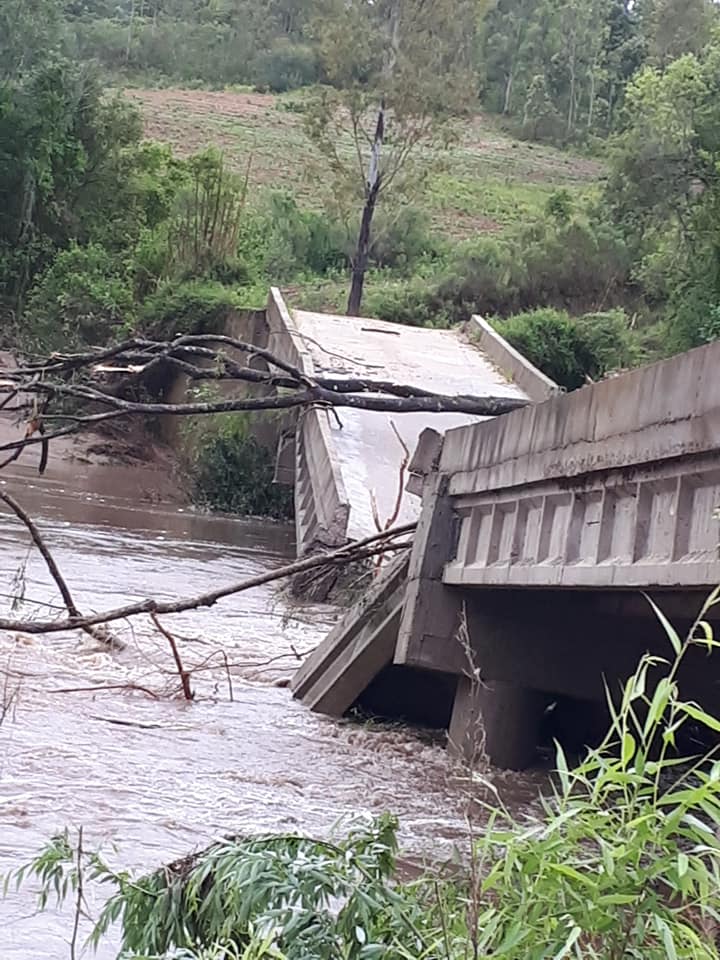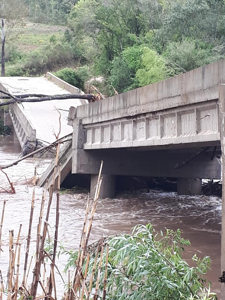 Outras 10 pontes também caíram no interior do município após a chuva que atingiu a região nos últimos dias.