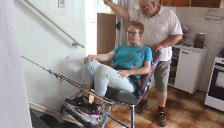 Dentro de casa, foi depois de a mulher sofrer um Acidente Vascular Cerebral (AVC), em 29 de dezembro. De repente, José Lino, se viu provocado a buscar uma solução que permitisse a circulação de Juraci Dias, 70, por todo o sobrado, mesmo com as limitações de movimento do lado esquerdo.