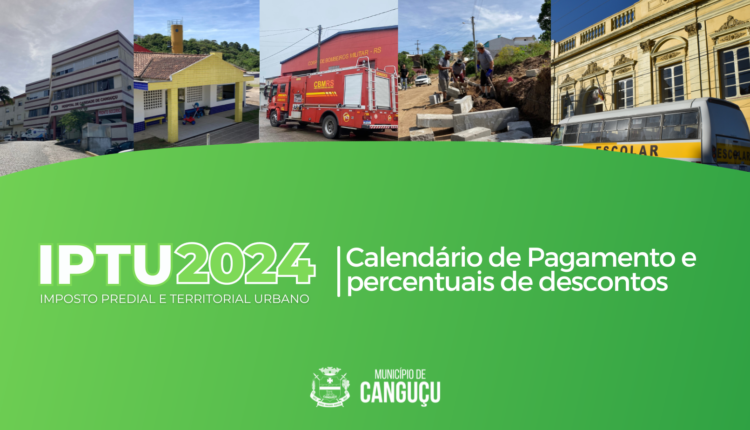 A Secretaria Municipal de Fazenda informa que os carnês do Imposto Predial e Territorial Urbano (IPTU) 2024 já estão sendo entregues no endereço dos contribuintes e também podem ser retirados na Agência do Correios, sito a Rua Júlio de Castilhos, 1366.
