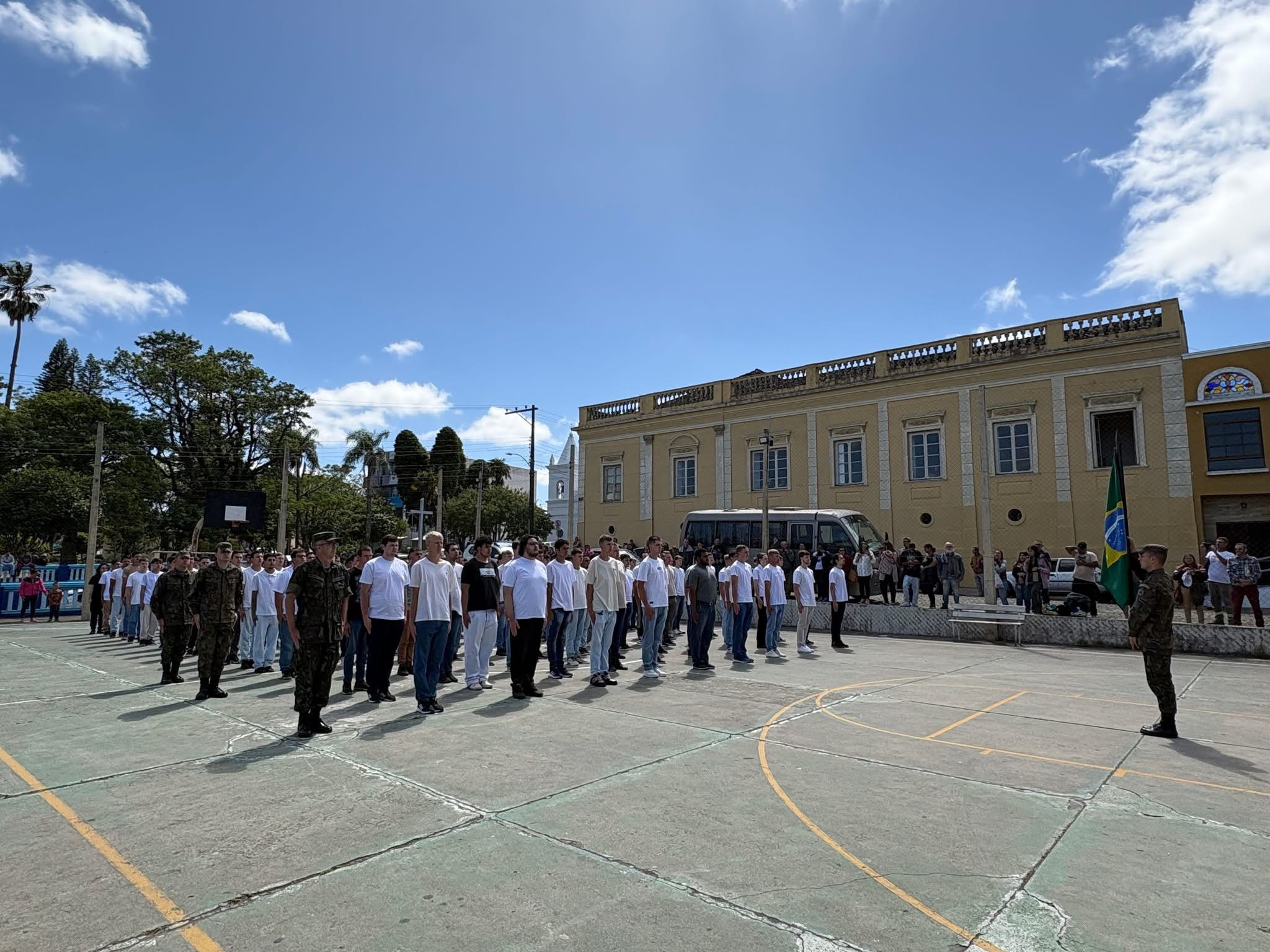 Na manhã de quinta-feira (6), foi realizada a cerimônia de Compromisso à Bandeira Nacional em Canguçu. O ato reuniu 170 jovens dispensados da prestação do serviço militar, pertencentes à classe de 2007 e anteriores.