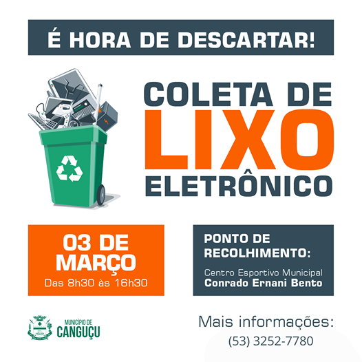 Nesta quarta-feira (3), a Prefeitura, através da Secretaria de Meio Ambiente e Urbanismo estará realizando mais uma coleta de lixo eletrônico. A coleta acontece novamente no Centro Esportivo Municipal Conrado Ernani Bento (Ginásio Municipal de Esportes) das 8h30 às 16h30h. Confira os materiais que serão recolhidos na campanha: – Caixas de som; – Desktop; […]