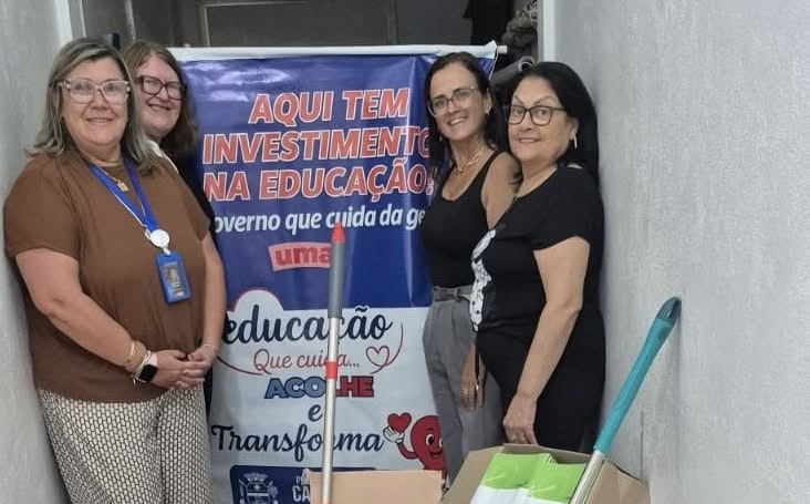 De acordo com a secretaria, os kits incluem itens como água sanitária, desinfetantes, panos, sabão, lixeiras, baldes com centrífuga, saboneteiras, sabonete líquido, papel higiênico e sacos de lixo, utilizados na manutenção e organização dos espaços escolares.