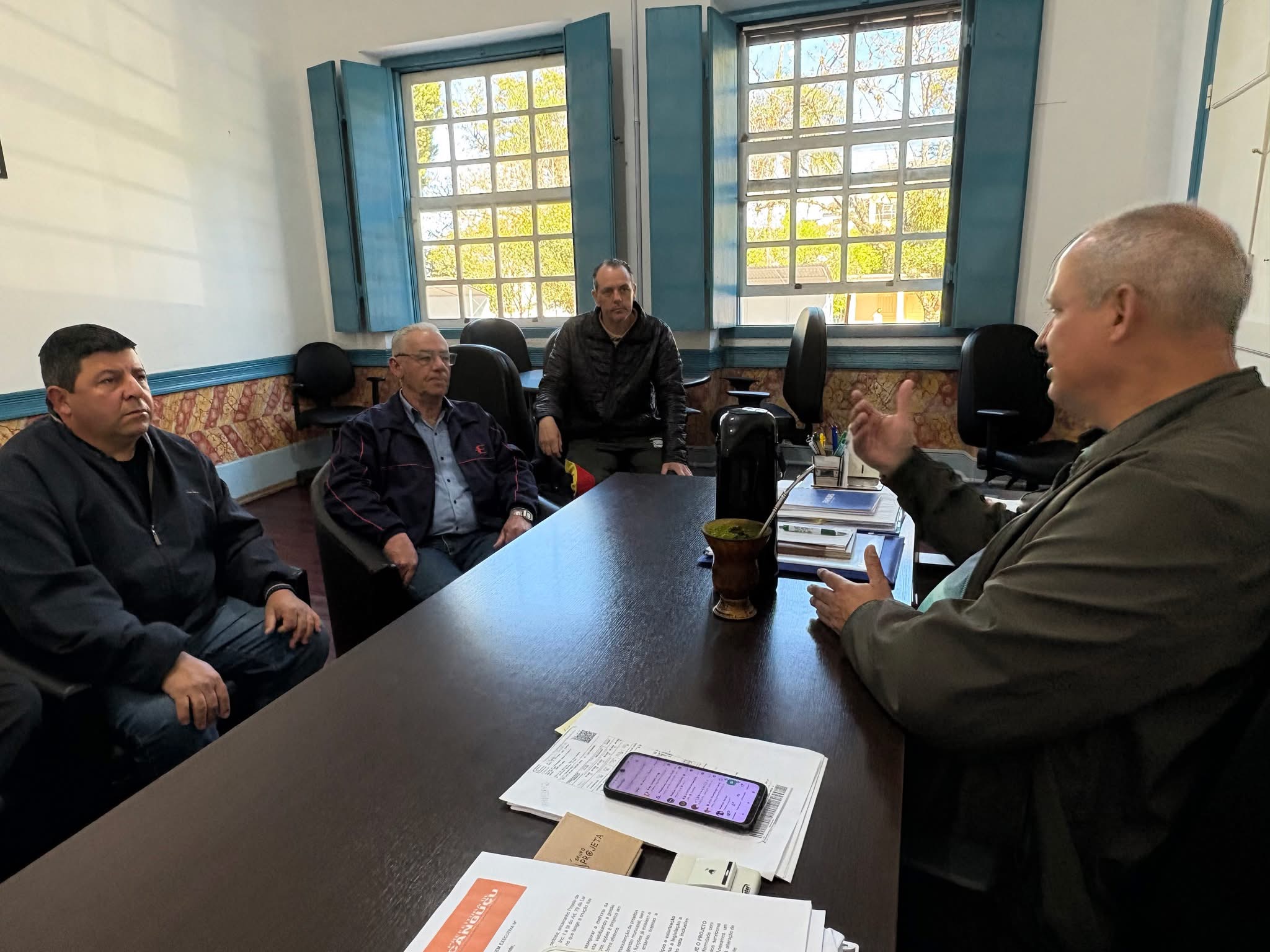 Na manhã desta terça-feira (14), o prefeito Arion Braga (Progressistas) recebeu em seu gabinete o supervisor operacional da empresa Embaixador, o vereador Emerson Machado (PSDB) e o secretário de Transportes, Estratégias Rurais e Logística, Mariselton Ribeiro. O encontro teve como pauta a situação da linha intermunicipal Pelotas x Canguçu, via Morro Redondo, cuja operação encontra-se suspensa.