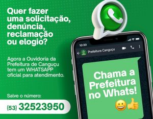 Nesta segunda-feira (7), a Prefeitura de Canguçu divulgou um contato para realização de solicitações, reclamações, denúncias ou elogios. O objetivo da ação é possibilitar que a população opine sobre as demandas e ações municipais.