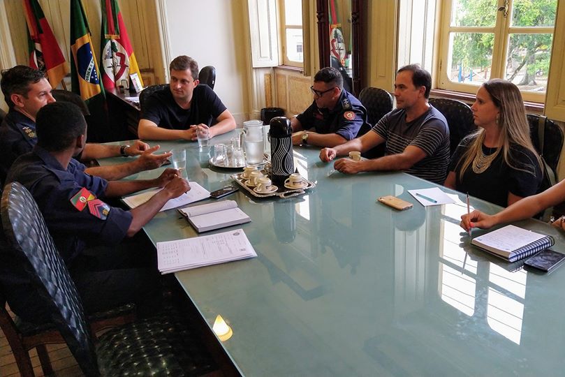A viabilização do Pelotão do Corpo de Bombeiros em Canguçu, foi o assunto abordado na tarde desta terça-feira (10) em reunião realizada entre o prefeito Vinicius Pegoraro, os secretários municipais José Joaquim Braga Rios e Richeli Cunha Coelho, a chefe de gabinete Aline Dutra Weber, a arquiteta Helena Marques e os representantes do Corpo de Bombeiros Militar do Rio Grande do Sul, o comandante do 3º Batalhão de Bombeiro Militar (3ºBBM), Tenente-Coronel Everton de Souza Dias e o comandante da Companhia Especial de Pelotas do Corpo de Bombeiros, major Gérson Luiz Rodrigues.