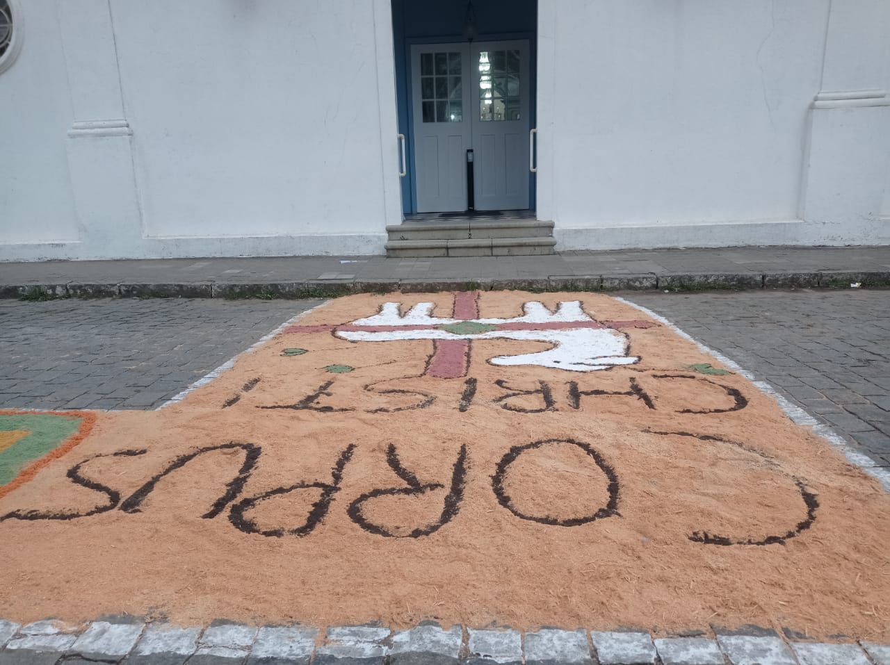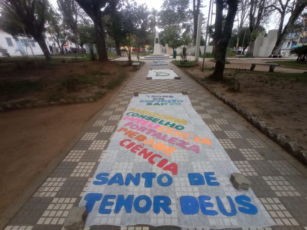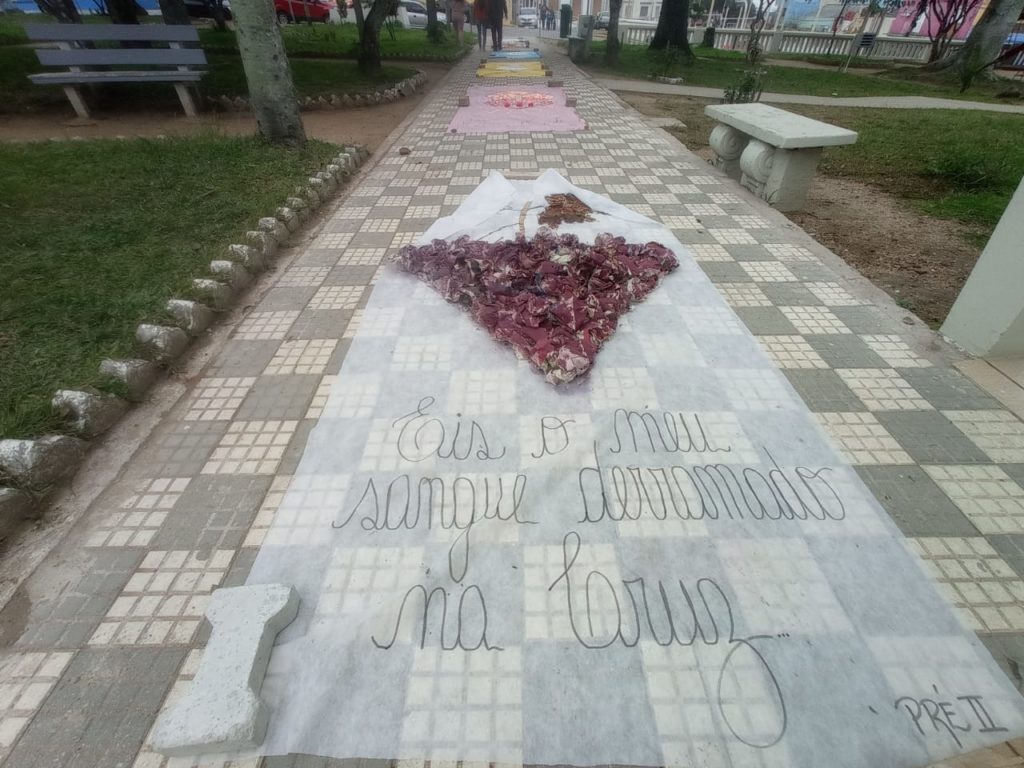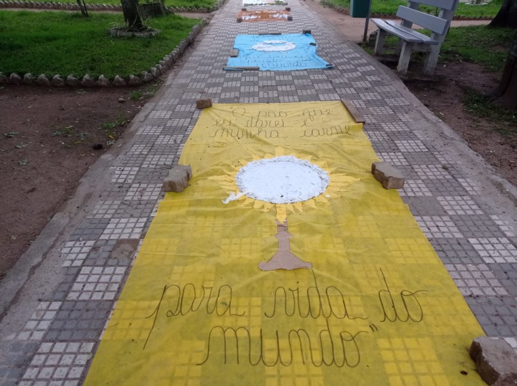 Centro de Canguçu recebe mensagens do tapete de Corpus Christi realizado pela Igreja Católica